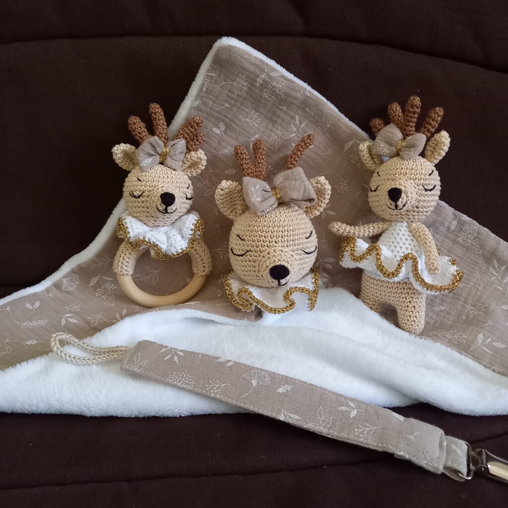 C’est l’arrivée de mes petits-enfants qui m’a donné l’envie de me replonger dans le crochet et la couture. Petit à petit, en renouant avec les fils, les aiguilles et les tissus, j’ai retrouvé le plaisir de créer de mes mains, de confectionner des pièces uniques avec amour et patience.
